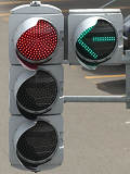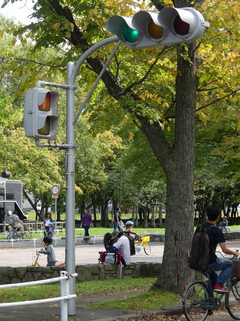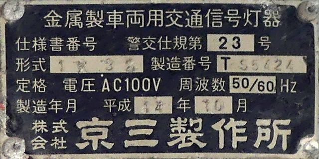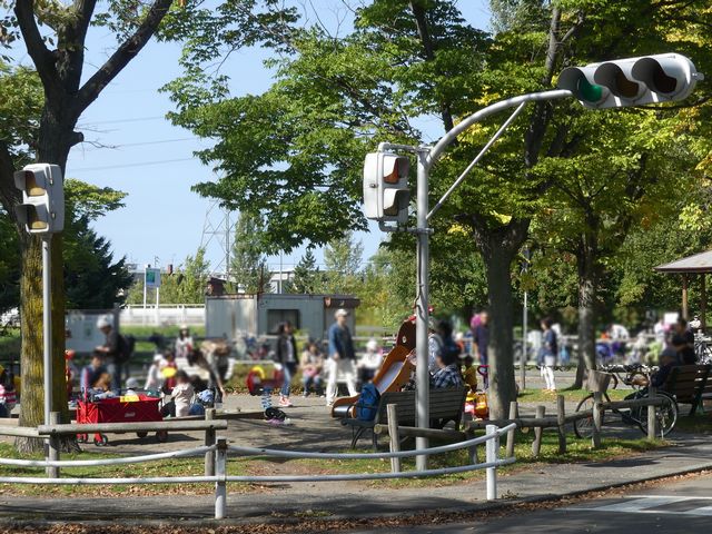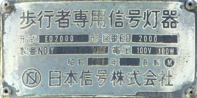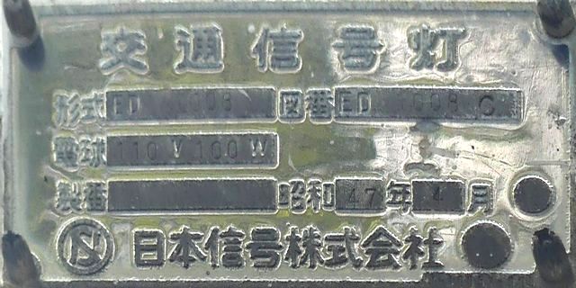 信号機は道路で使用されるのと同じ本物の信号灯器が使用されています。車両用灯器は日本信号製の初期丸型灯器で昭和47年4月製、歩行者用灯器は昭和47年5月製ですが、公園の開園は昭和50年2月であり、数年のずれがあります。