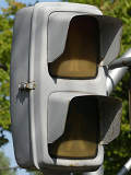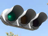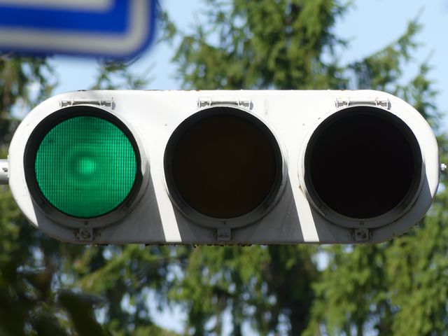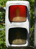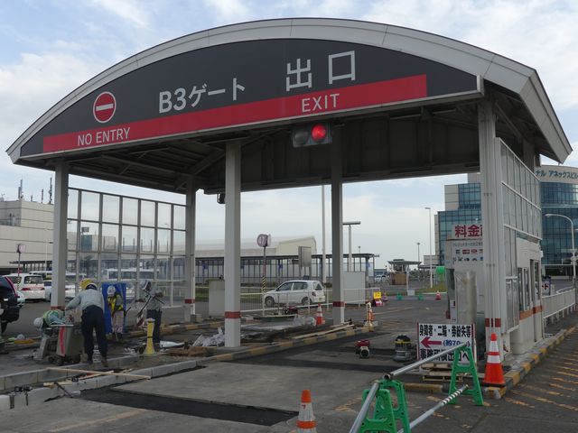 空港の駐車場で、何箇所か出入口のゲートがありますが、この出口ゲートのみ2位式の交通信号灯器が開閉表示灯として使用されています。