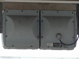 ビルの屋内駐車場出口と搬入車両用出口から道路への流入部が信号交差点となっており、出口の方に向けて通常灯器が設置されていますが、見えにくいためか、補助的に2位式灯器を設置しているようです。