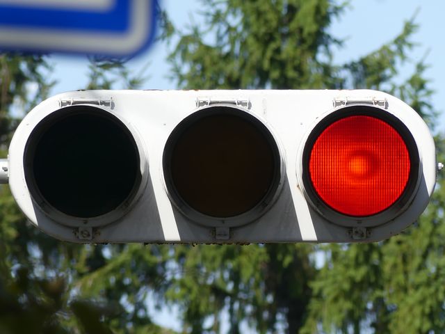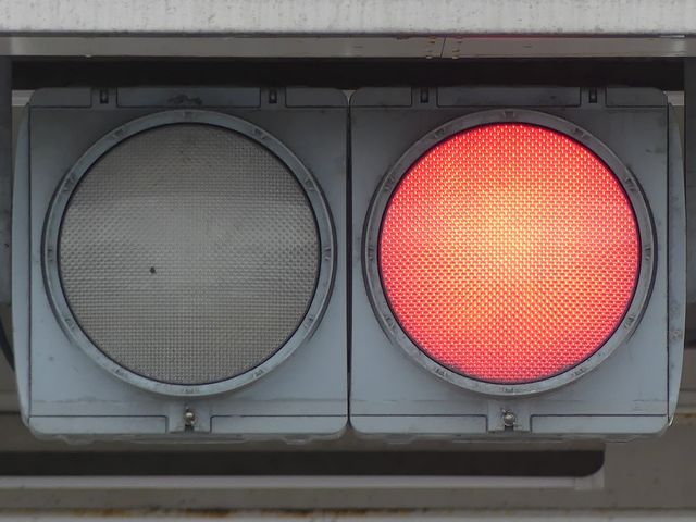 通常は、青灯が点灯していますが、取材時は工事でゲートが利用できないため赤灯が点灯していました。