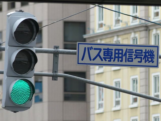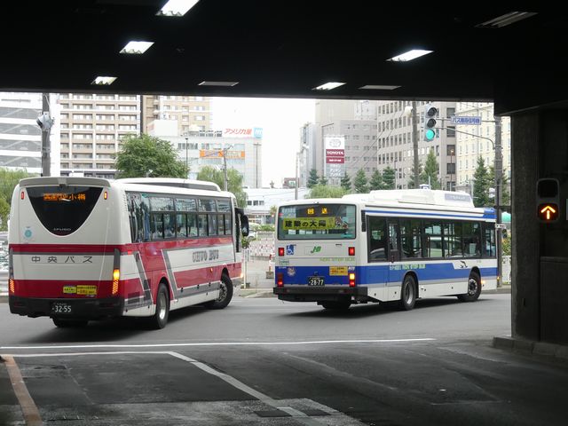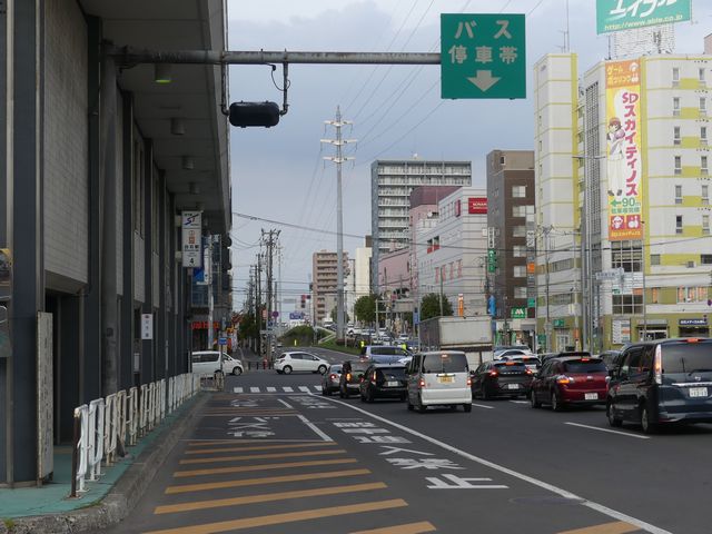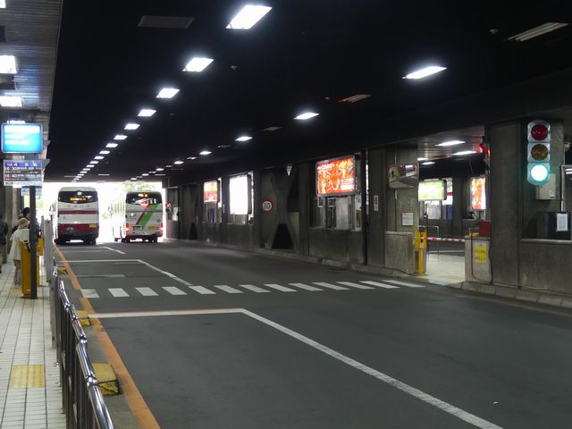 札幌駅バスターミナルには3つのレーンがあり、それぞれのバス停を行き来する歩行者のために押ボタン式の信号機が設置されています。