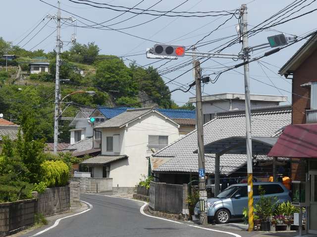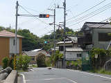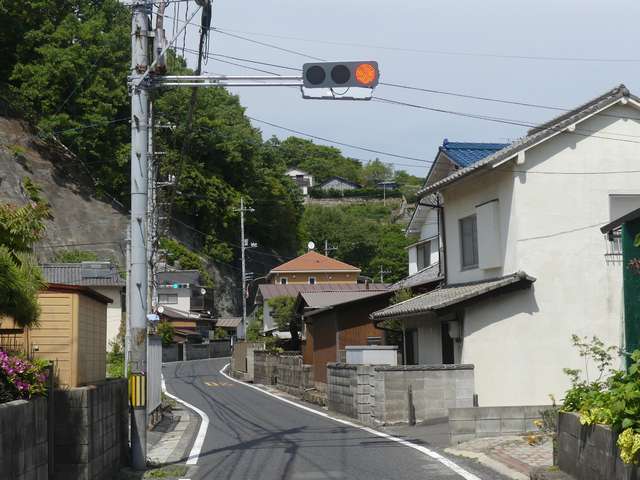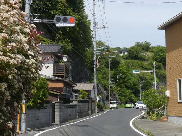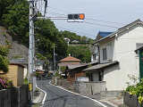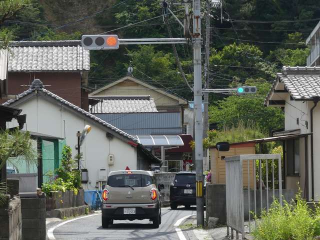 幅員の狭い約200mの区間で信号による交互通行規制が行われています。