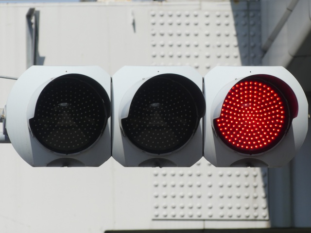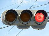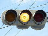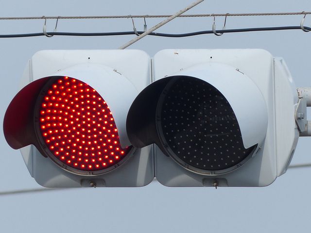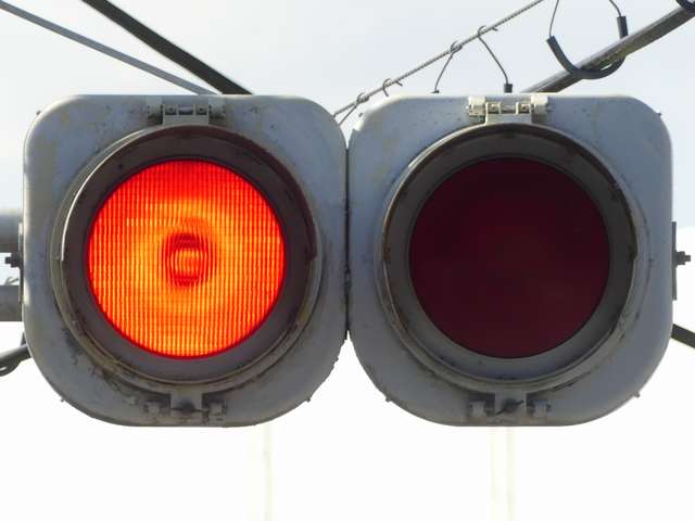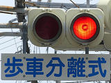 列車の接近(踏切警報灯の点滅)を感知すると、従道路(踏切直交)側車両に通行権が与えられるタイミングでも、赤信号のままになります。歩行者は青信号になります。すでに従道路側車両が通行できる状態(黄点滅又は赤点滅)となっている場合は、歩行者の青信号を継続したまま赤信号となります。