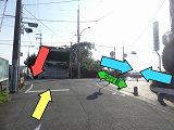踏切の奥にあたる方(東進側)は、手前の踏切信号であると勘違いされる可能性があるため、青信号にならず、赤点滅により交差点手前で一時停止させ進行させます。東進で交差点に向かう車両は、まず踏切で道交法に従い一時停止した後、交差点手前で赤点滅に従い一時停止し、交差点に進入することになります。