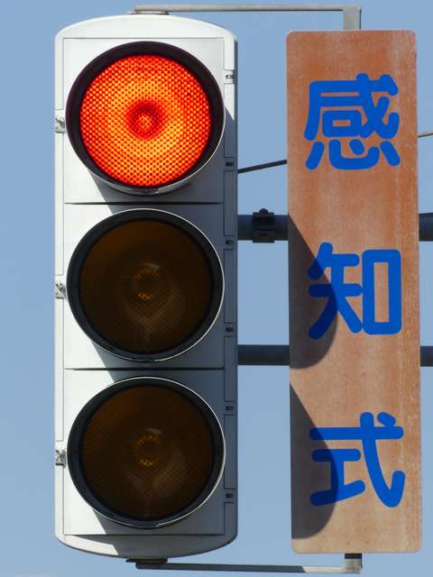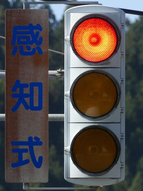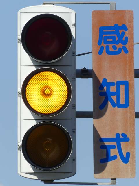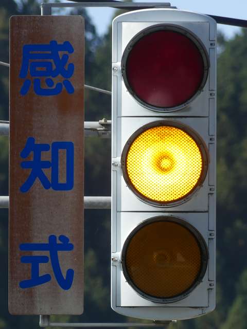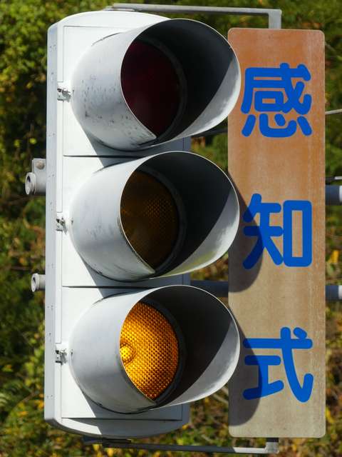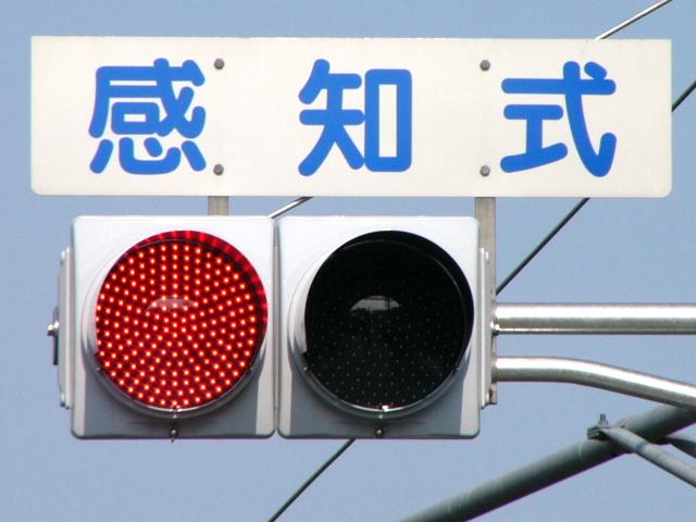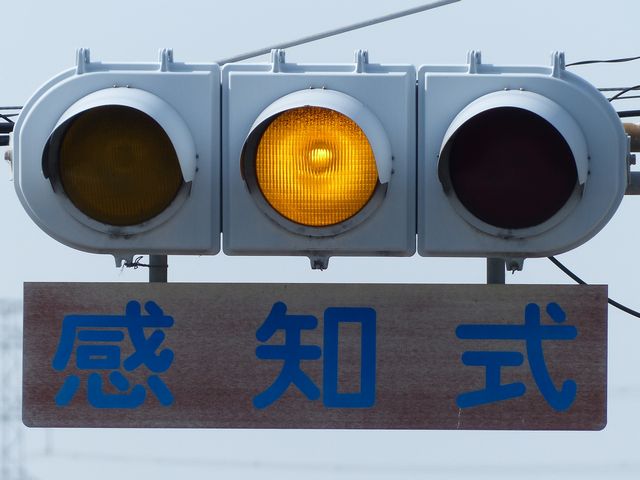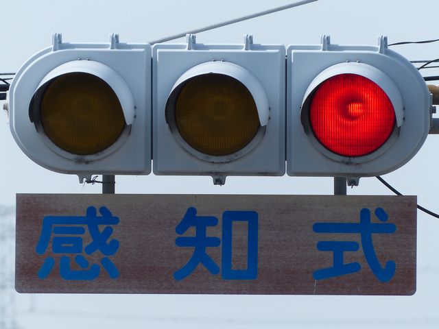 踏切警報灯の点滅を感知する感知器がありますが、取材時には列車が接近しても信号サイクルの変更はありませんでした。
