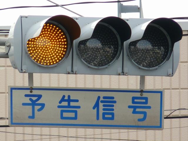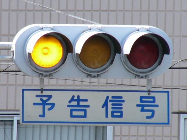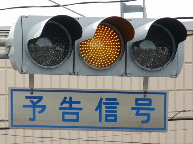 「予告信号」として使用されています。前方の信号が青のとき左黄点滅を表示し、黄や赤のときはそれぞれの色を表示します。