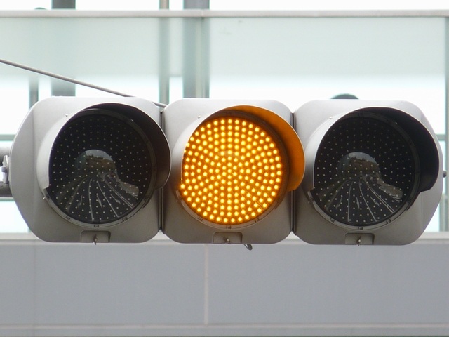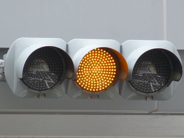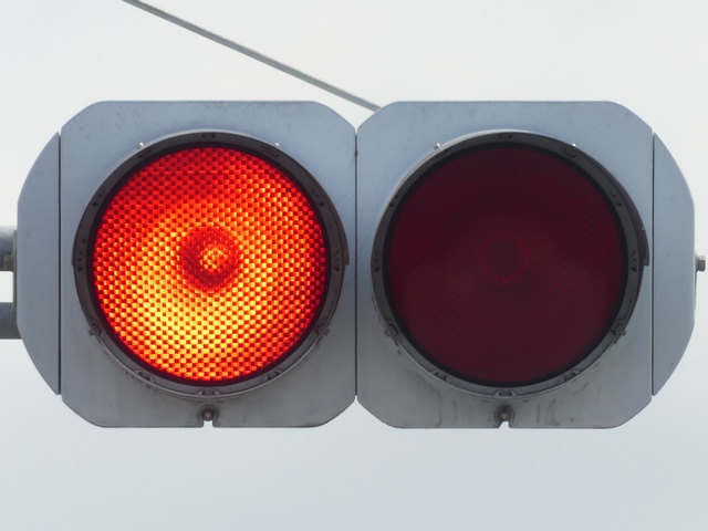 通常、異方向の黄点滅と赤点滅を同時に表示する場合、黄点滅と赤点滅が交互に点灯するようにしますが、ここでは同時に点滅させています。