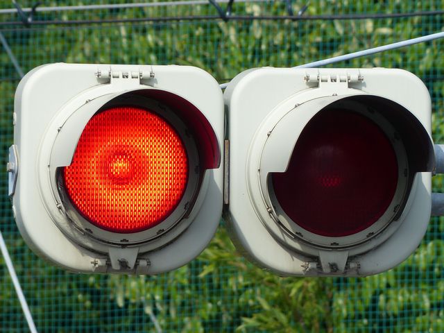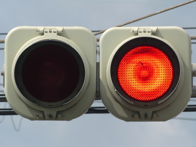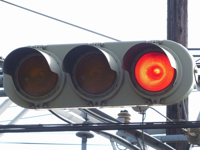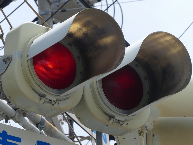 なお以前は、「赤・赤」灯器では、左赤が点滅で、右赤が点灯でしたが、灯器が交換されて、動作が逆になりました。単なる配線ミスだと思われます。