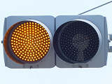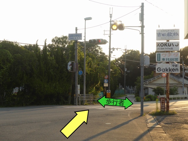 変則交差点に変則交差する交通量の少ない道路に対して使用されます。主に青信号の歩行者と変則的に交差する場合に、黄点滅により注意させながら交差点に進入させるために使用されます。