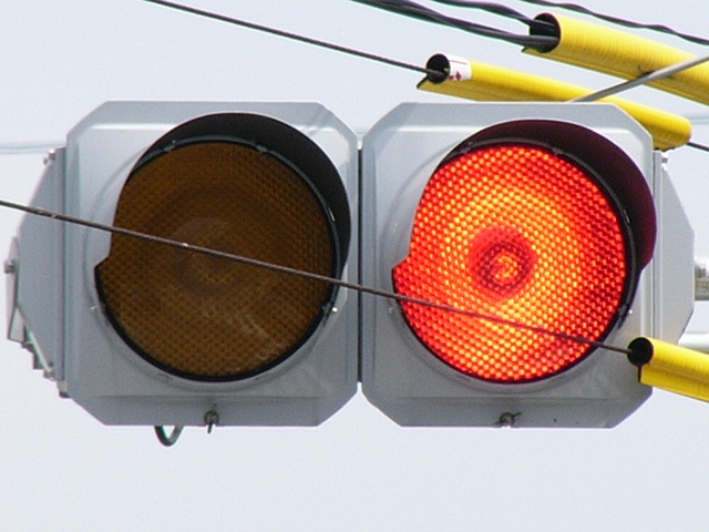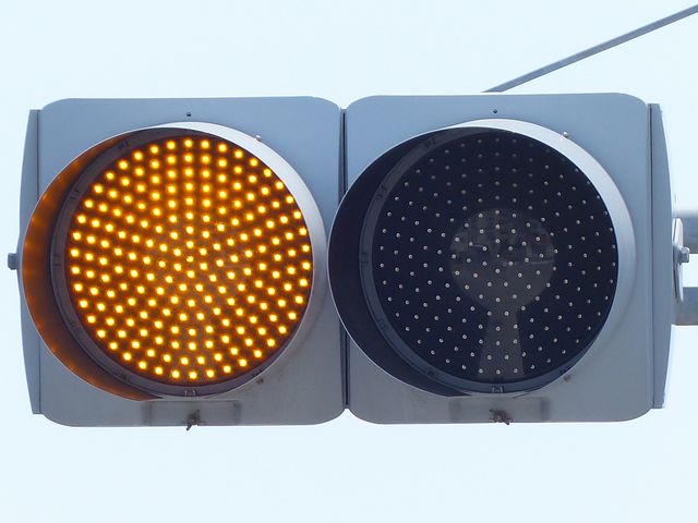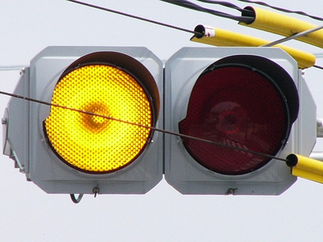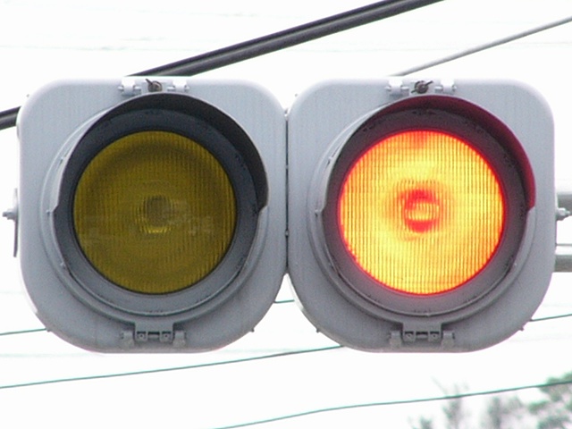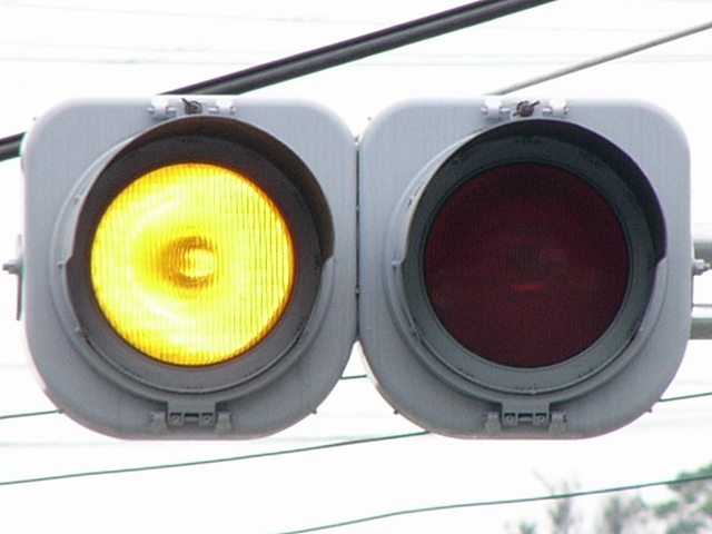 黄点滅と赤信号の間に黄信号を挟みます。