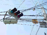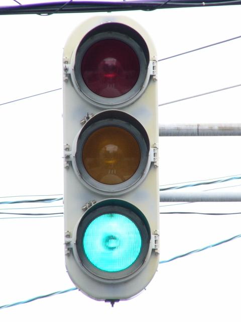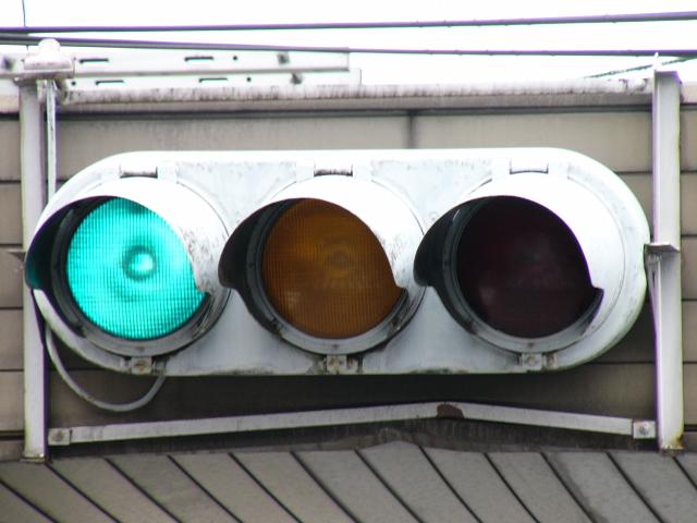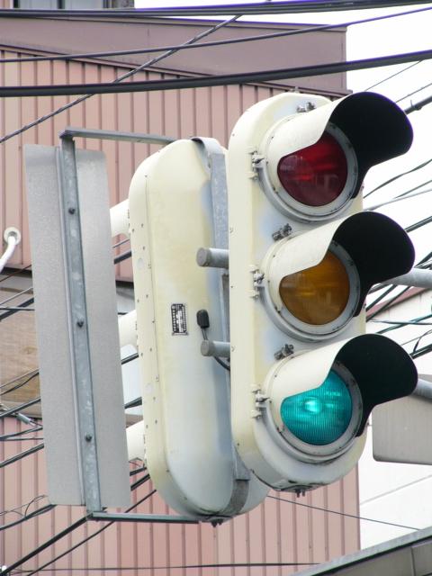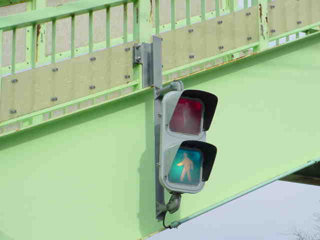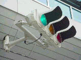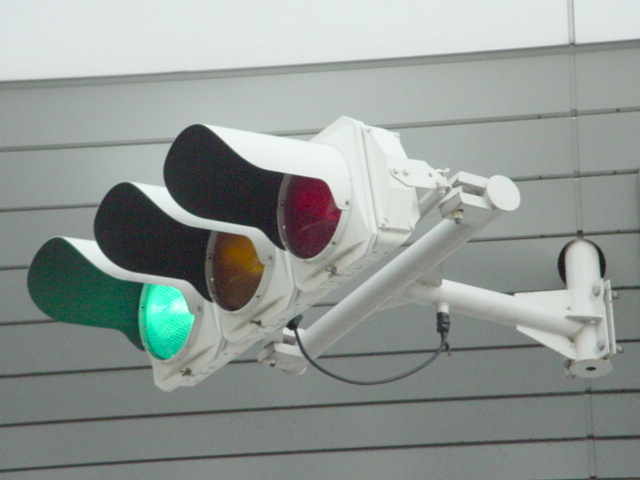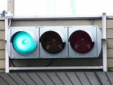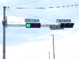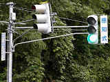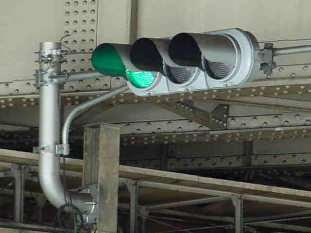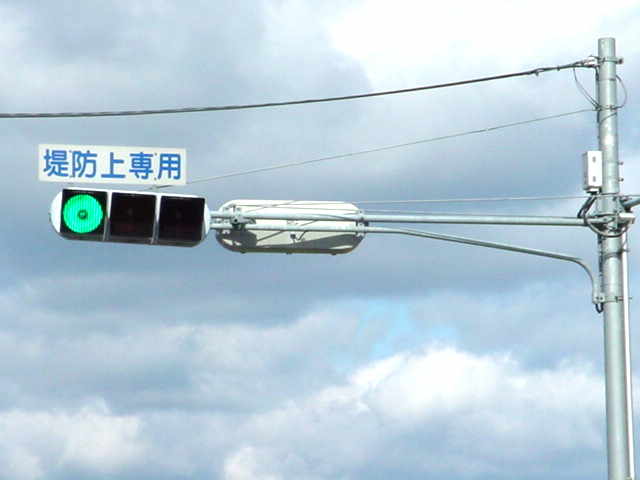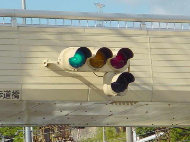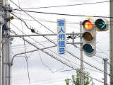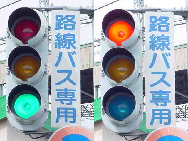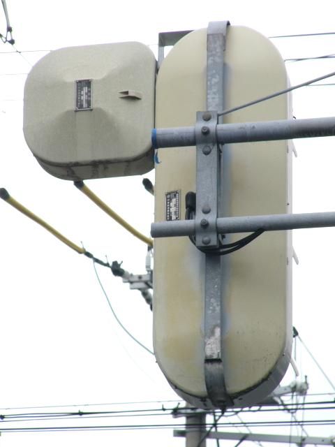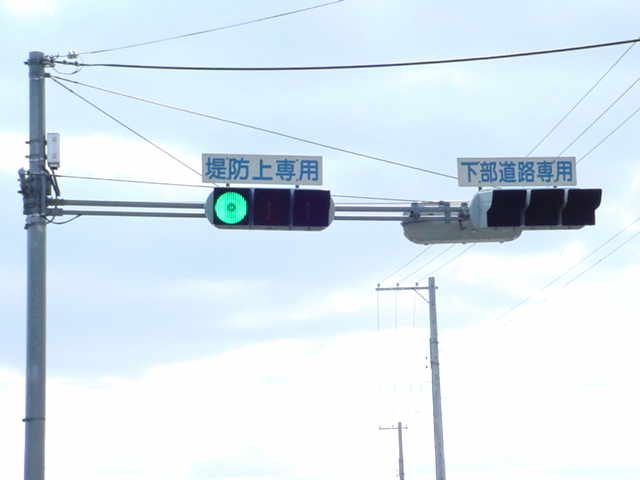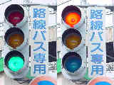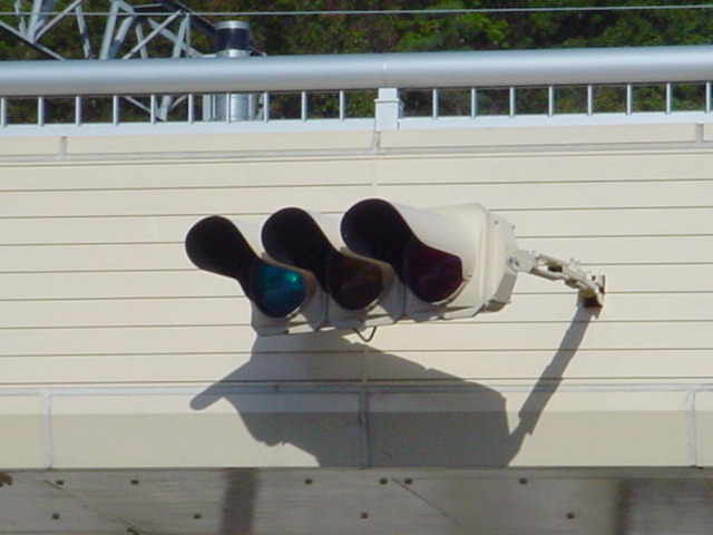 別方向に対する灯器を1つのアームの同じ面に設置しています。誤認防止のために視角制限フードを使用しています。