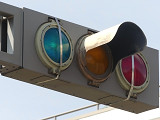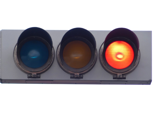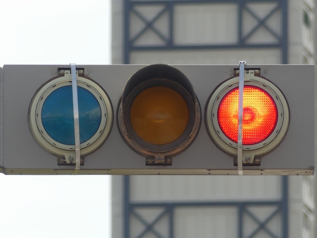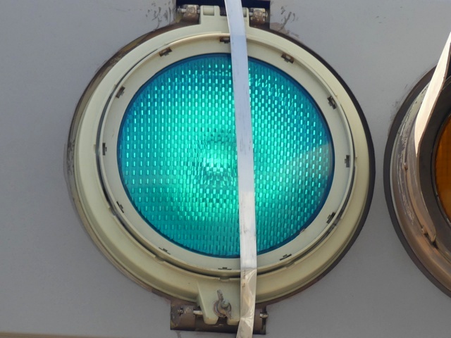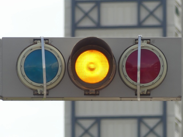 なお、2021年4月に青灯と赤灯の蓋が破損したようで、応急処置でほかの灯器から蓋の部分だけ移設しています。外れないようにバンドで締め付けるため、フードが外されています。