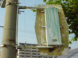 自転車・歩行者用縦型灯器です。2001年まで、緑ヶ丘公園の近くのR171に2基残っていましたが、その後、普通の歩行者用灯器に交換されてしまいました。