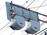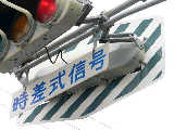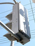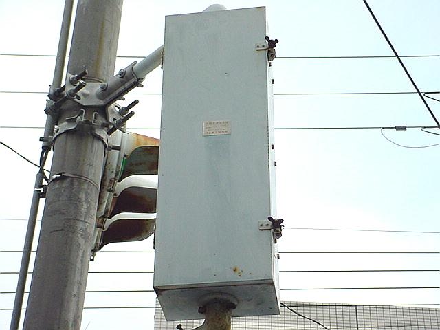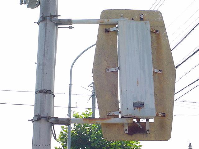 丸型灯器に設置されていますが、カットされている部分が角型灯器の形になっているため、信号ファンの間では角型灯器からの流用説が強くなっています。片面タイプと両面タイプがあります。