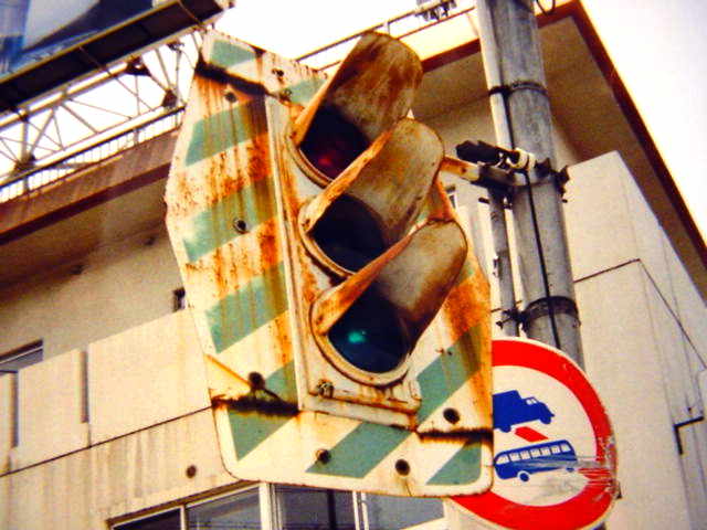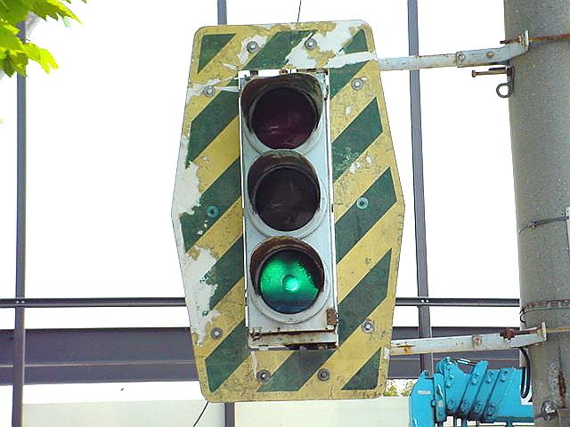 2002年までR43に残っていました。この交差点では、歩道橋に設置されたこの1基だけが背面板付きの状態でした。角型灯器自体がこの1基だけで、他の灯器はすべて新しいものでした。