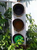 自転車・歩行者用縦型灯器です。2001年まで、兵庫r13「伊丹1」交差点の1つ南の交差点に3基も残っていましたが、その後、普通の歩行者用灯器に交換されてしまいました。