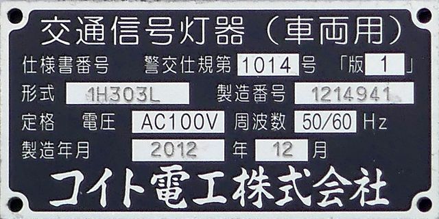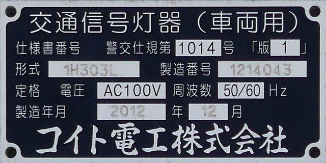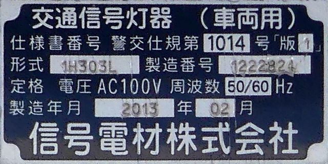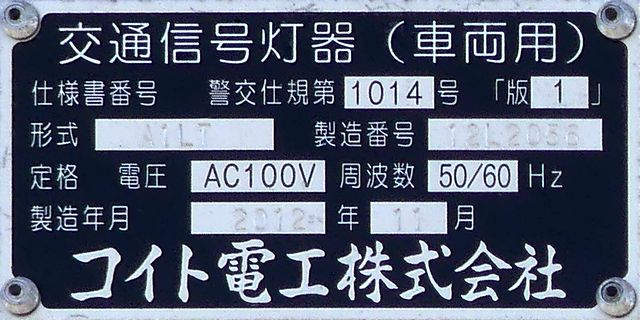 なお、SD制限フード灯器使用の際の条件なのか、SD制限フード灯器を含め交差点のすべて車両用灯器は、コイト電工銘板の信号電材筐体のものが使用されています。矢印灯器と踏切に設置されている赤・黄・赤の変則配列の灯器は、コイト電工筐体のものです。