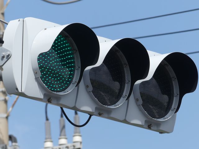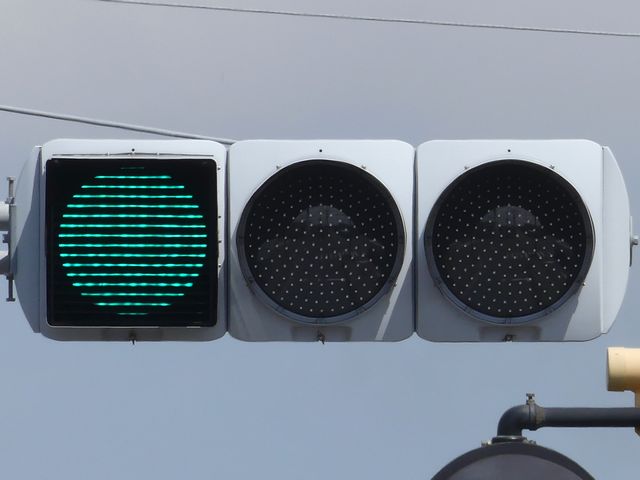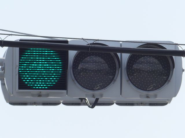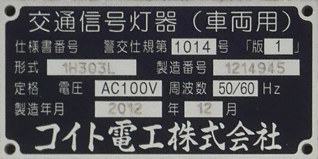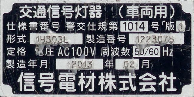 なお、SD制限フード灯器使用の際の条件なのか、交差点の他の車両用灯器は、コイト電工銘板の信号電材筐体のものが使用されています。矢印灯器は、コイト電工筐体のものです。
