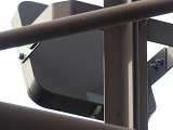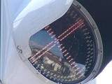 鋭角交差点の誤認防止のため、長い筒型フードを装着しています。