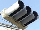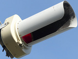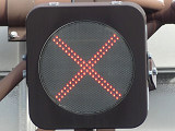時間帯による中央線変移区間(約550m)で通行できない車線を「×」印で表示する「車線表示灯」にフラット型灯器が使用されています。