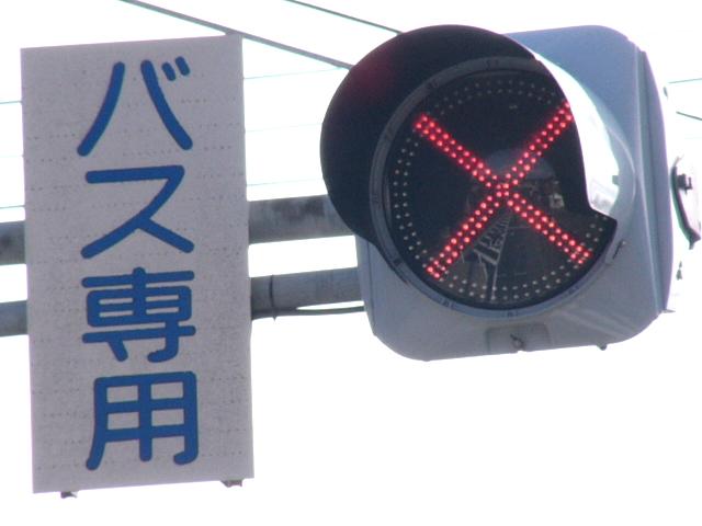 この区間の手前に感知器がありバスを感知しているようです。ただ、私の見ていた限りではバスは通らず、南側の信号はまったく点灯しませんでしたが、北側の信号は×・・・○・・・×の順に変わっており、どのようなサイクルなのかは分かりません。