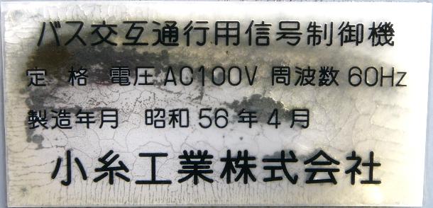 制御機の上部には通常の朝日影(警察のマーク)ではなく、辰口町(2005/2/1に合併し能美市に)の町章が付いていることから、町が管理している信号機だと思われます。