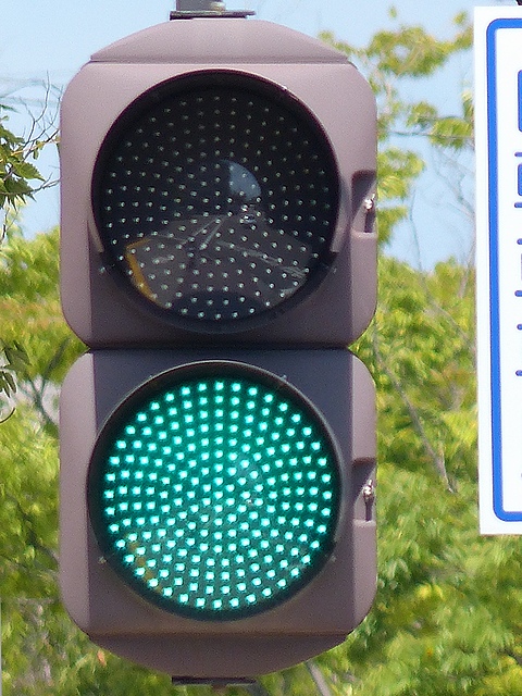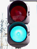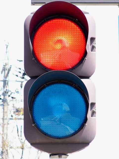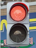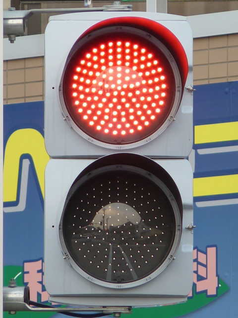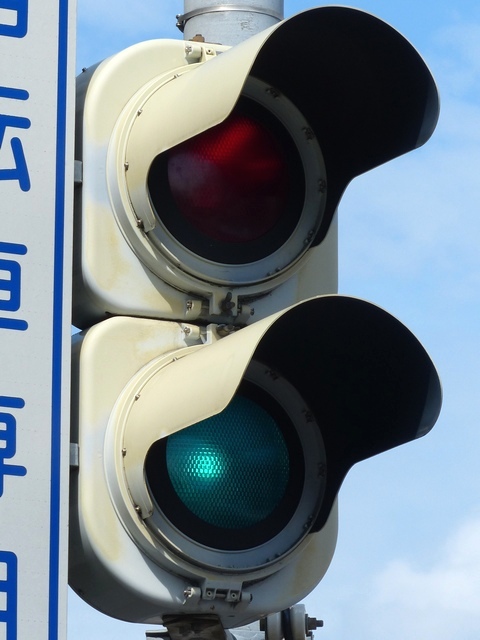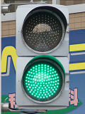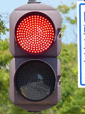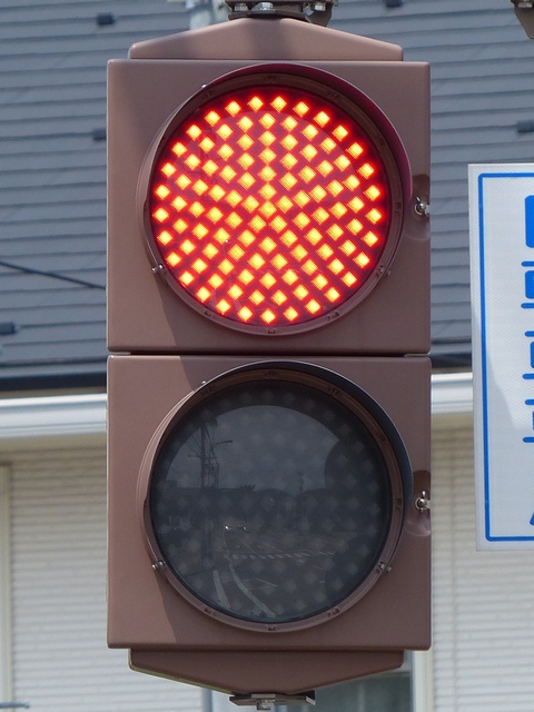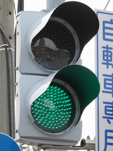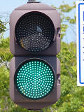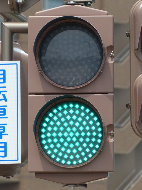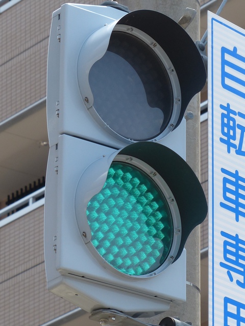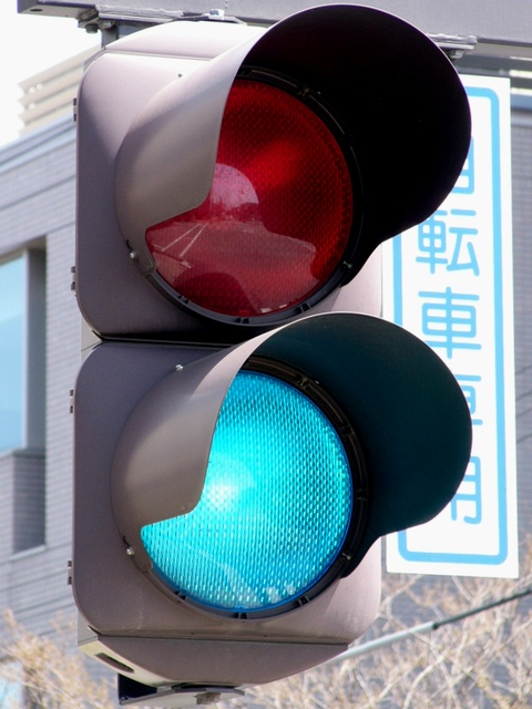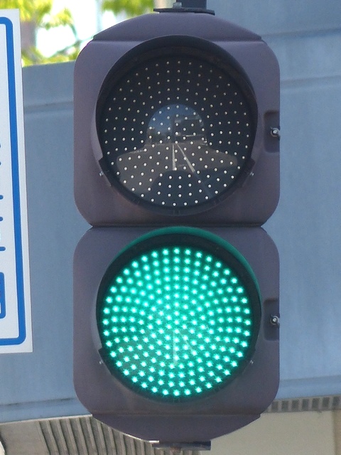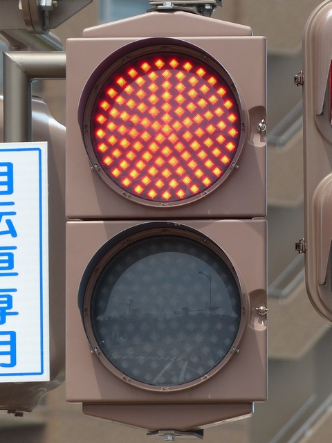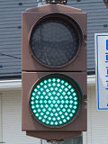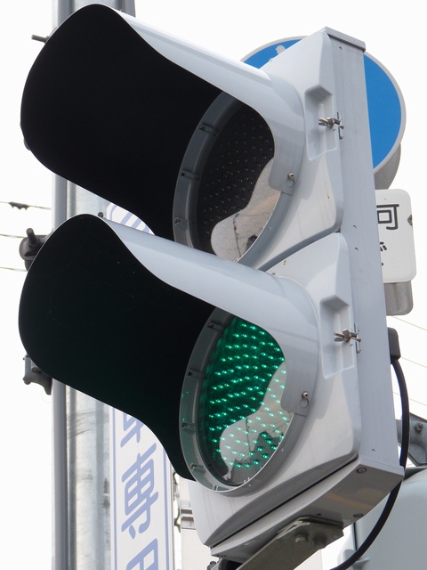 以前は、横断歩道のすぐ横に自転車横断帯が設置されていたため、歩行者用灯器による信号を「自転車・歩行者専用」としていましたが、自転車横断帯が自転車専用通行帯の延長上に移設されたことに伴い、「自転車専用」の2位式灯器が増灯されました。信号サイクルは、青点滅することを含め、併設された歩行者用灯器の信号と同じですが、人形の無い信号の青点滅の意味は道路交通法施行令では規定されていません。