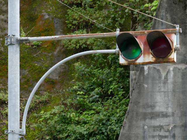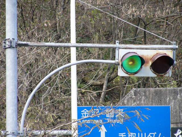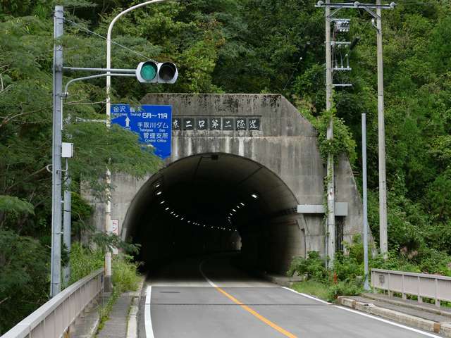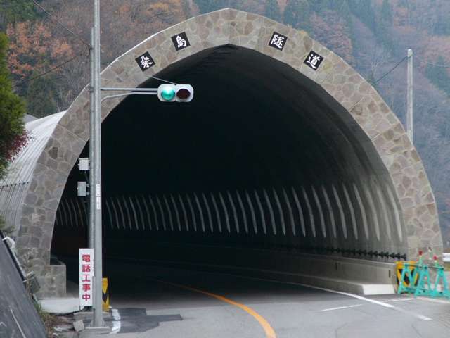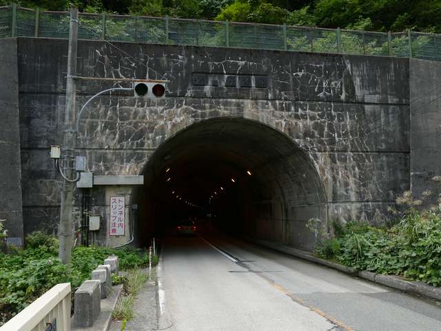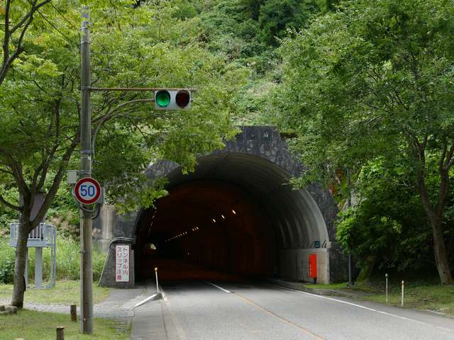 国道157号の手取湖付近では、青・赤の2位式灯器が設置されたトンネルがいくつかあります。なお、必ずトンネルの両側坑口に設置されているわけではなく、片側入口にしか設置されていない場合もあります。