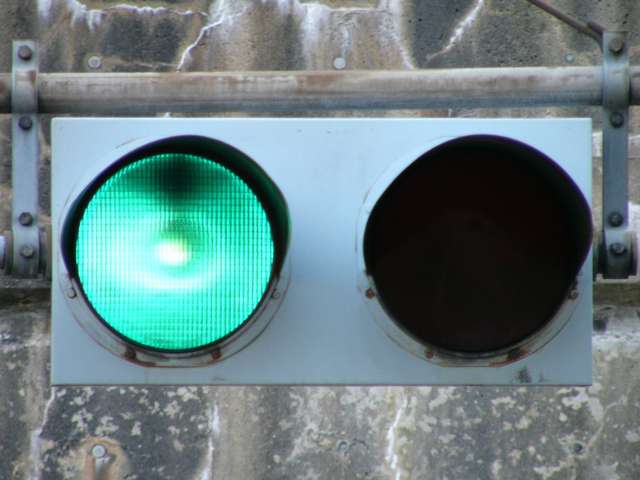 通常は青信号となっています。トンネル内で事故や災害が発生したときに赤信号になり、車両の進入を防ぐと思われます。