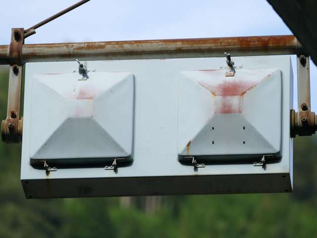 東二口第一隧道南側坑口には、以前は日本電池製の角型灯器が設置されていましたが、現在は日本信号製の薄型灯器が設置されています。