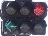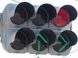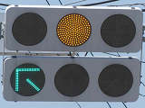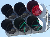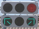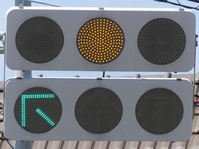 左折車線が信号交差点の範囲外にあるため左折矢印信号を使用しませんが、左折矢印を含んだ3位式矢印灯器を設置しています。