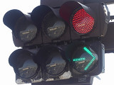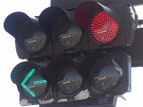 ├形交差点で左折路がないのに左折矢印を含んだ3位式矢印灯器を設置しています。