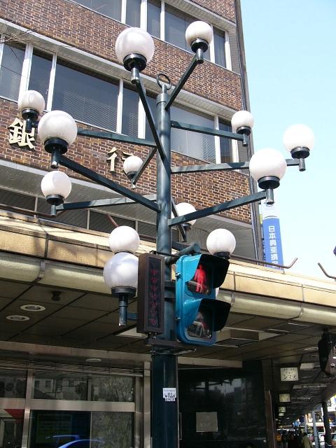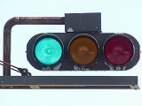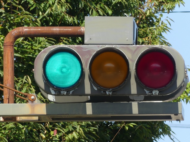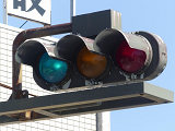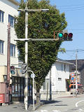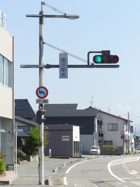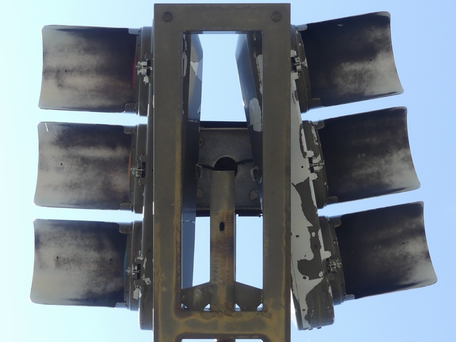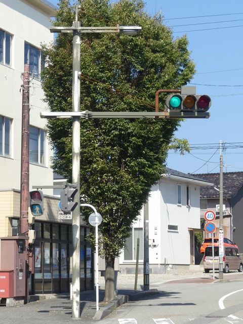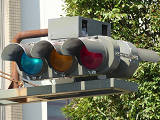 アームの上に伸ばしたアームから車両用灯器を吊り下げています。矢印灯器の追加が考慮されていません。