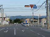 県道と市道の交差点で県道側に一時停止規制があるため、「とまれ」灯器で規制を強調しています。