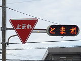 ここでは狭い道路との交差点のため、一時停止規制を見落とさないように「とまれ」灯器で規制を強調しています。