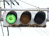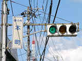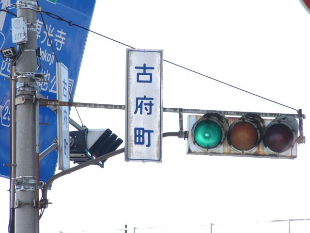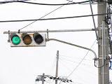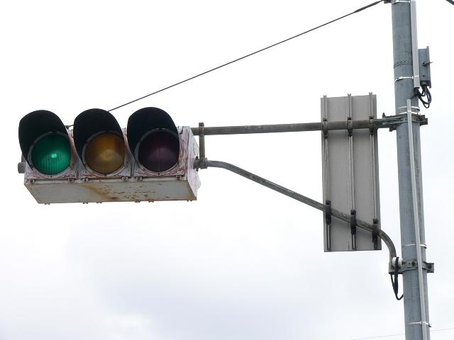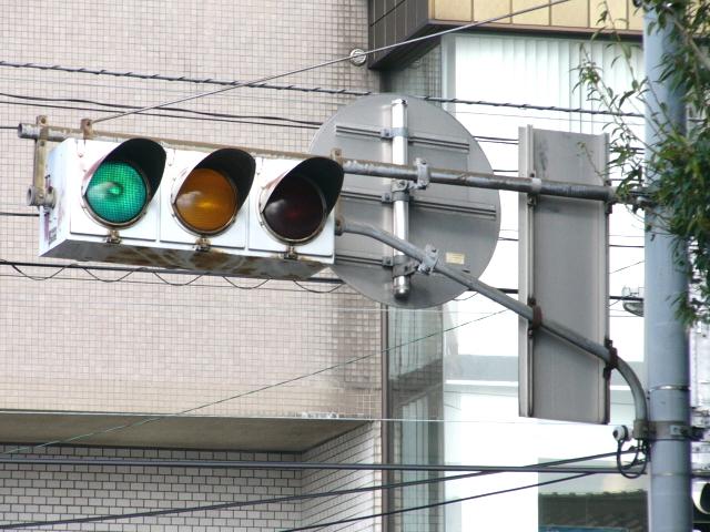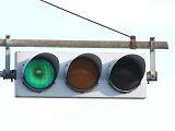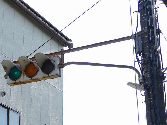 日本信号製の直径250mmレンズ縦型灯器です。名称は「車両用交通信号灯器」となっています。表蓋です。この交差点に1基のみ設置されています。