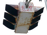 日本信号製の直径250mmレンズ灯器です。名称は「車両用交通信号灯器」となっており、銘板は側面上部に付いています。
