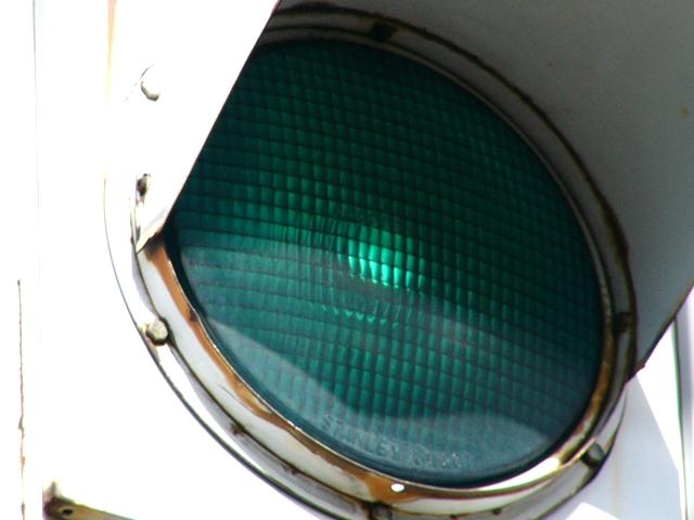 日本信号製の直径250mmレンズ灯器です。銘板は側面下部に付いています。