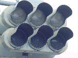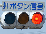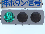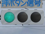 従来の電球式灯器に電球型LED球を装着したLED式灯器です。この交差点のすべての車両用灯器と歩行者用灯器がこのタイプです。