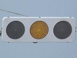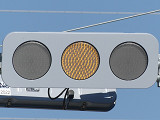 従来の樹脂製灯器にLED式ライトと無色レンズを装着したタイプです。矢印灯器は電球式です。