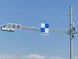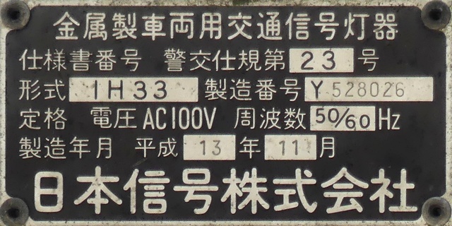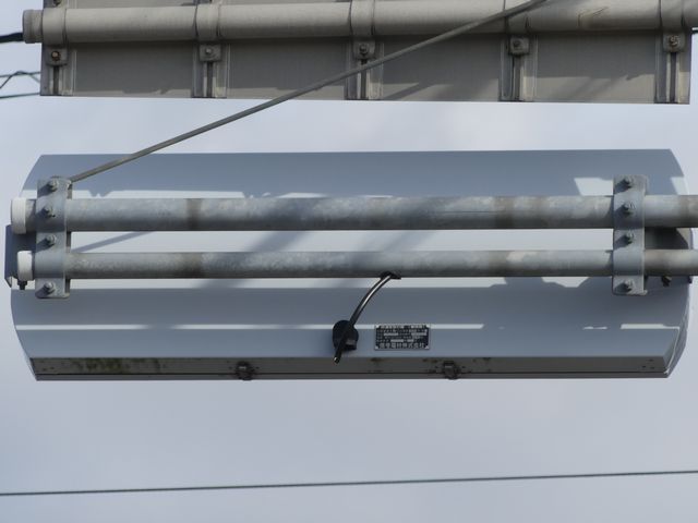 この横断路の上下線の灯器として2台設置されていますが、南進用は横型灯器(形式「1H303L」)、北進用は縦型灯器(形式「1V303L」)を横型設置したものです。