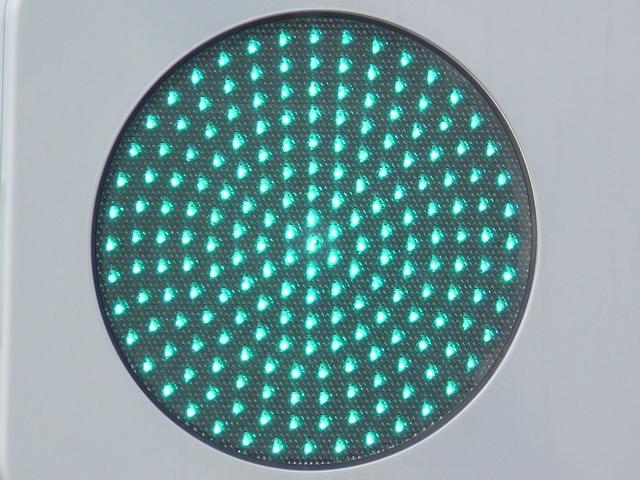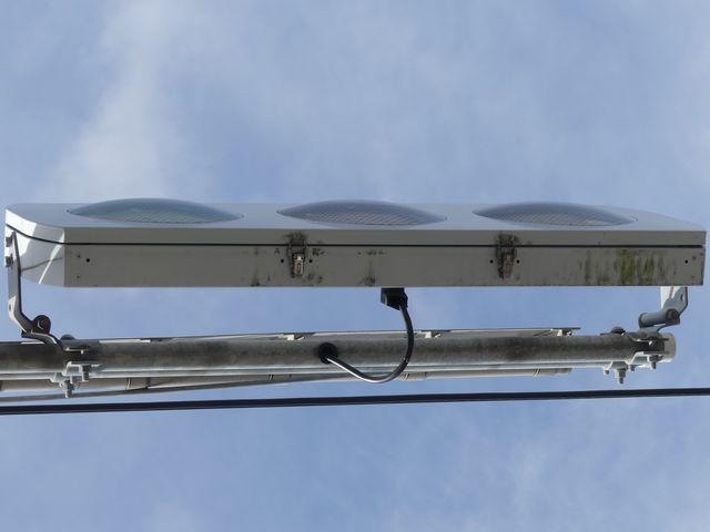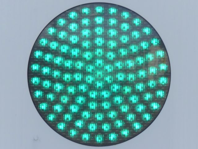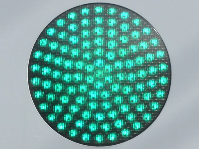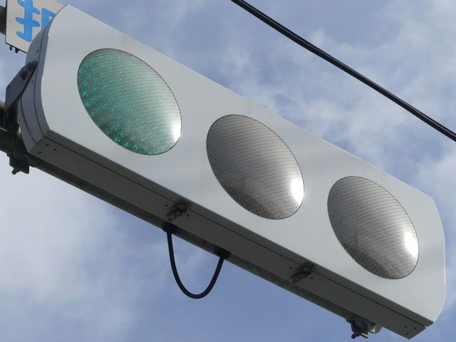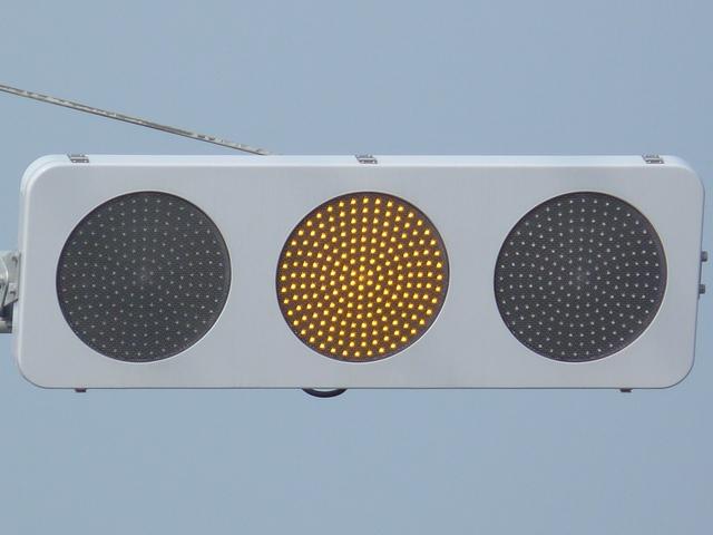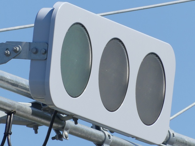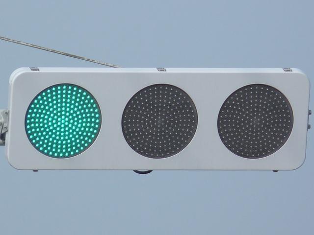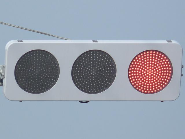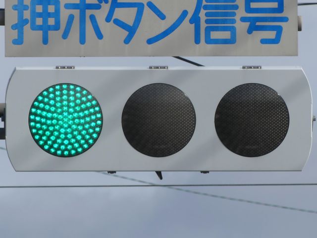 光り方から、使用しているLED球はエクセル製の「くりくり信ちゃん」か常盤電業製の「TYライト(TYDタイプ)」と思われます。なお、通常のLED式灯器で見られるデジカメを通して見たときに灯火がゆっくり点いたり消えたりする現象(西日本の場合)は見られません。