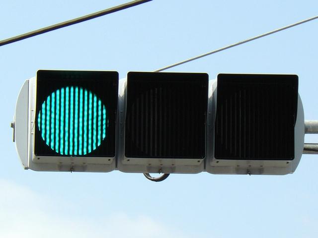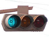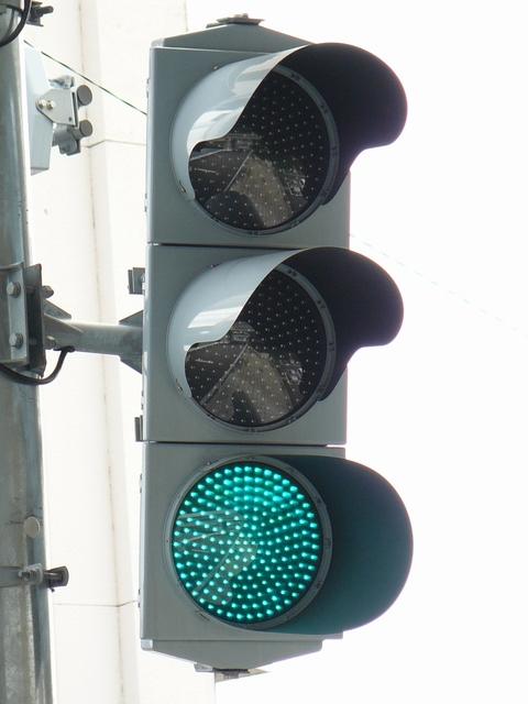 連続交差点のため、青だけ距離制限フードを使用しています。