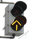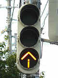 青信号のときに黄矢印が点灯します。本灯器が距離制限&筒型フードで、本灯器の信号が見えづらいために設置されているようです。