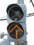 ポイントのある交差点の電車用矢印信号です。