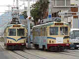 併用軌道区間のT形交差点です。信号サイクルは赤・・・赤↑↑・・・青・・・黄・・・赤→・・・黄・・・赤です。