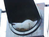 詳しい動作は確認していません。また、周囲が薄暗かったため、レンズに何が表示されるのかも確認できませんでした。灯器の背面に丸いレンズのようなものが取り付けられています。
