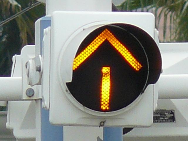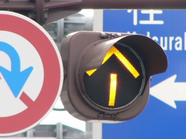 青信号のときに黄矢印が点灯し、それ以外のときには「×」が点灯します。