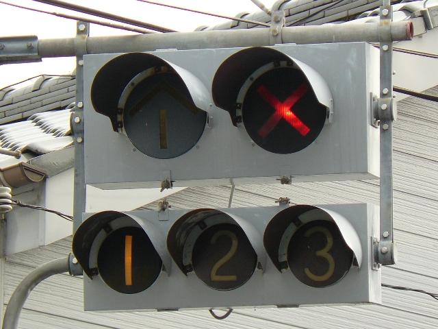 「×」「↑」の2位式灯器や白の1位式灯器、青赤の2位式灯器が設置されています。動作は確認していません。