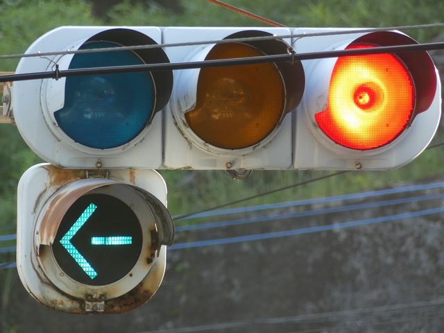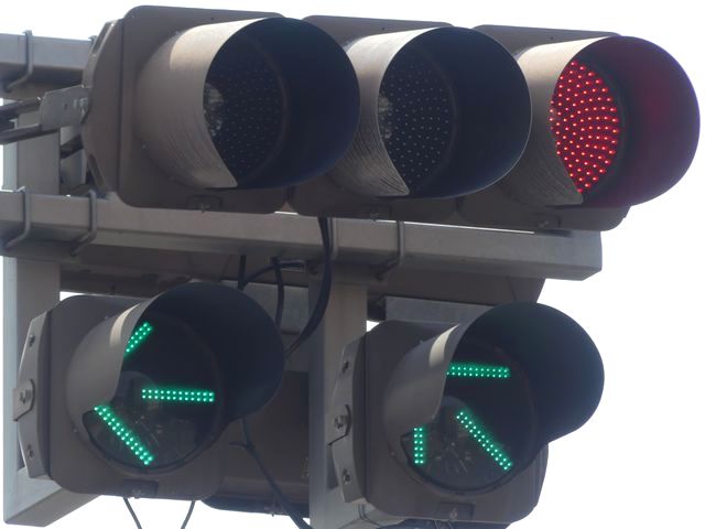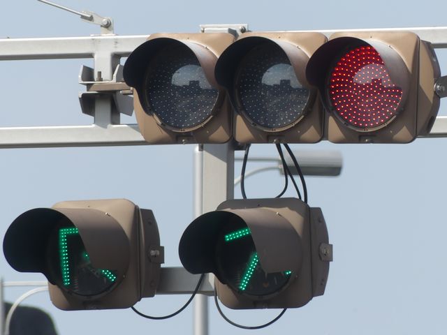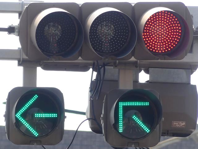 直径250mmレンズの矢印灯器です。この交差点に1台あります。